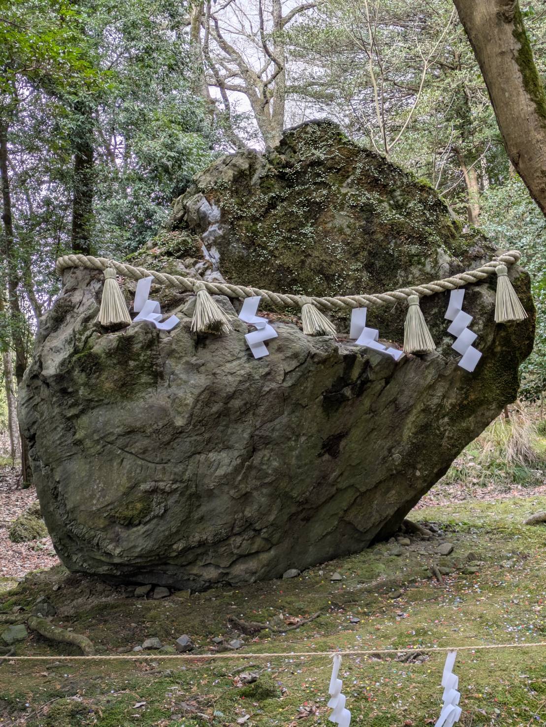 出雲大神宮の大きな特徴は、神社の背後にある御神体山「御蔭山(みかげやま)」です。山そのものが信仰の対象とされており、古代の自然信仰の形が今も残されています。